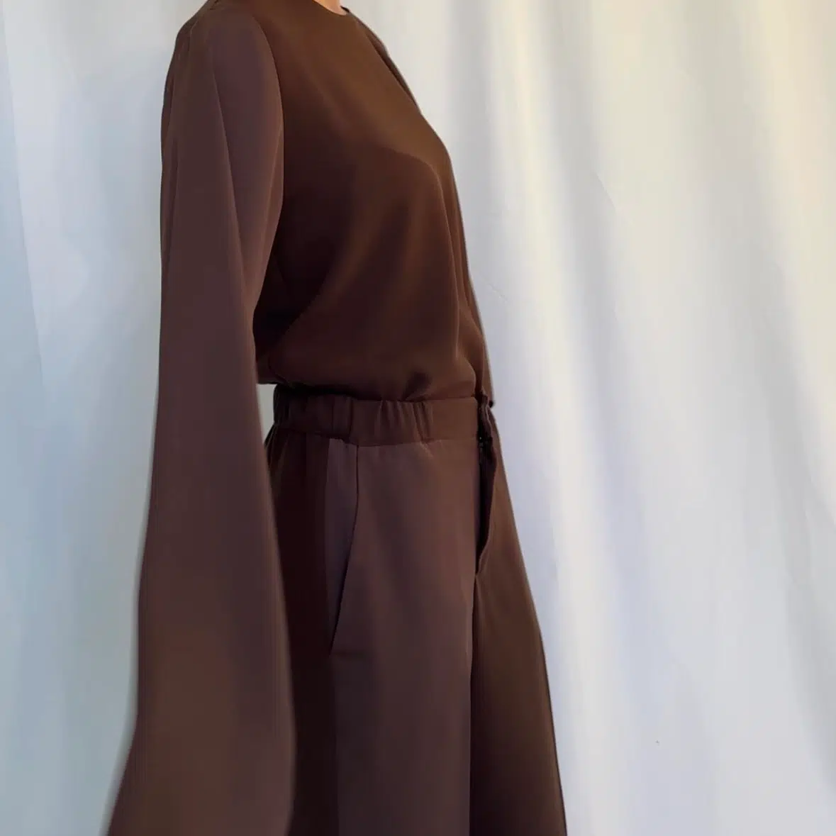 - Long satin sleeves with movement