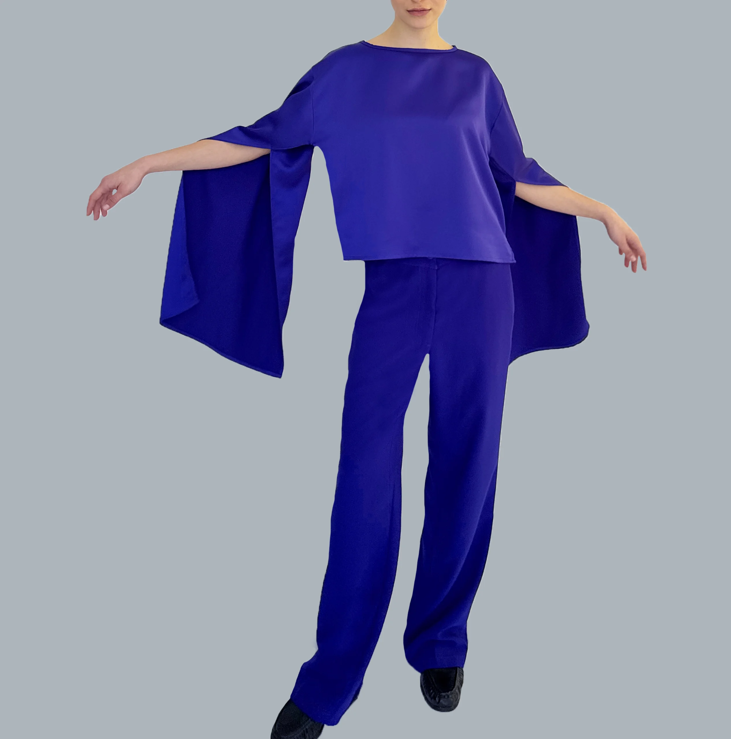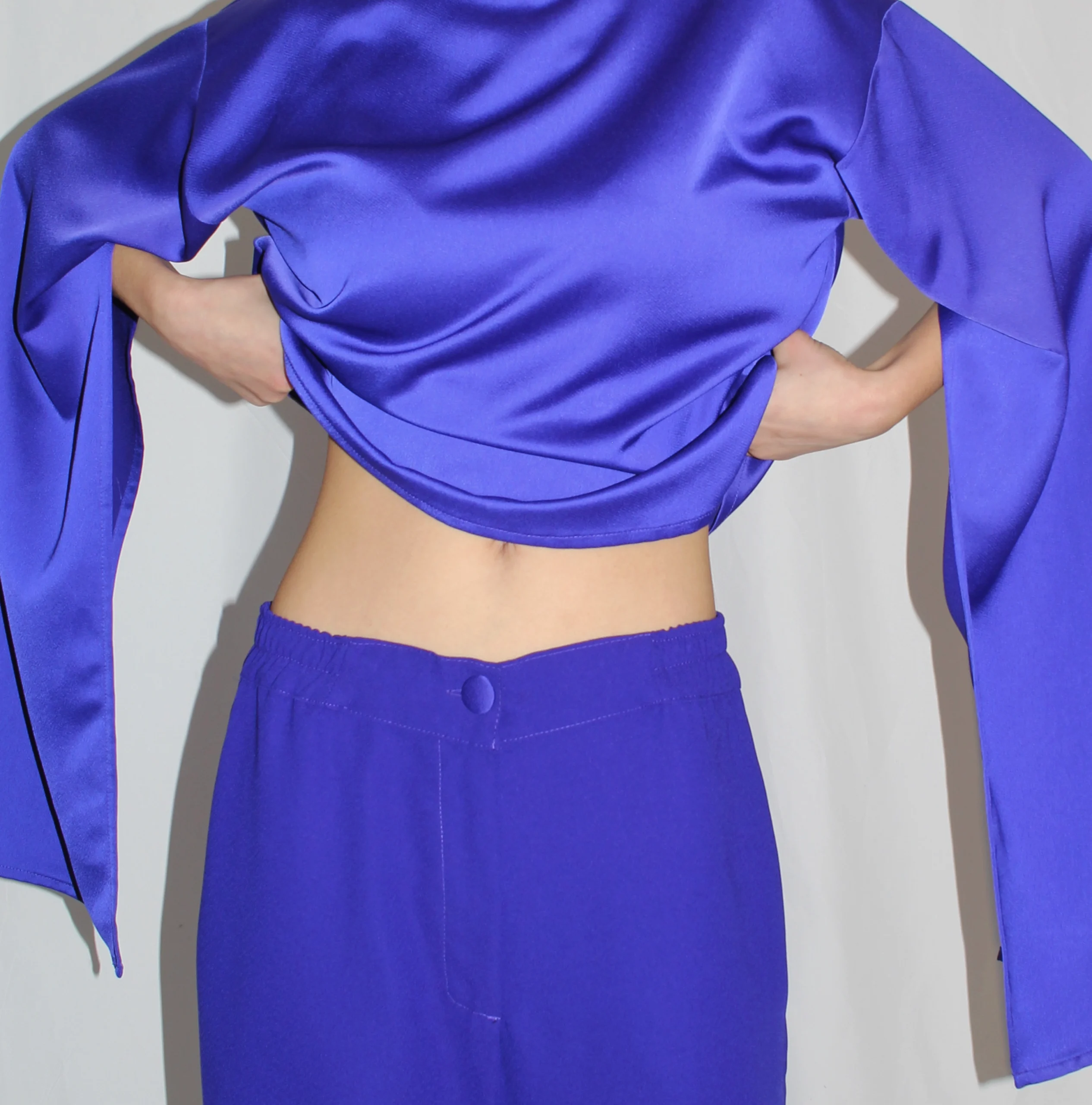 Designed to be worn comfortably throughout the day, the pants transition effortlessly from office wear to evening looks. The crepe satin fabric offers a gentle touch on the skin while maintaining structure and elegance.