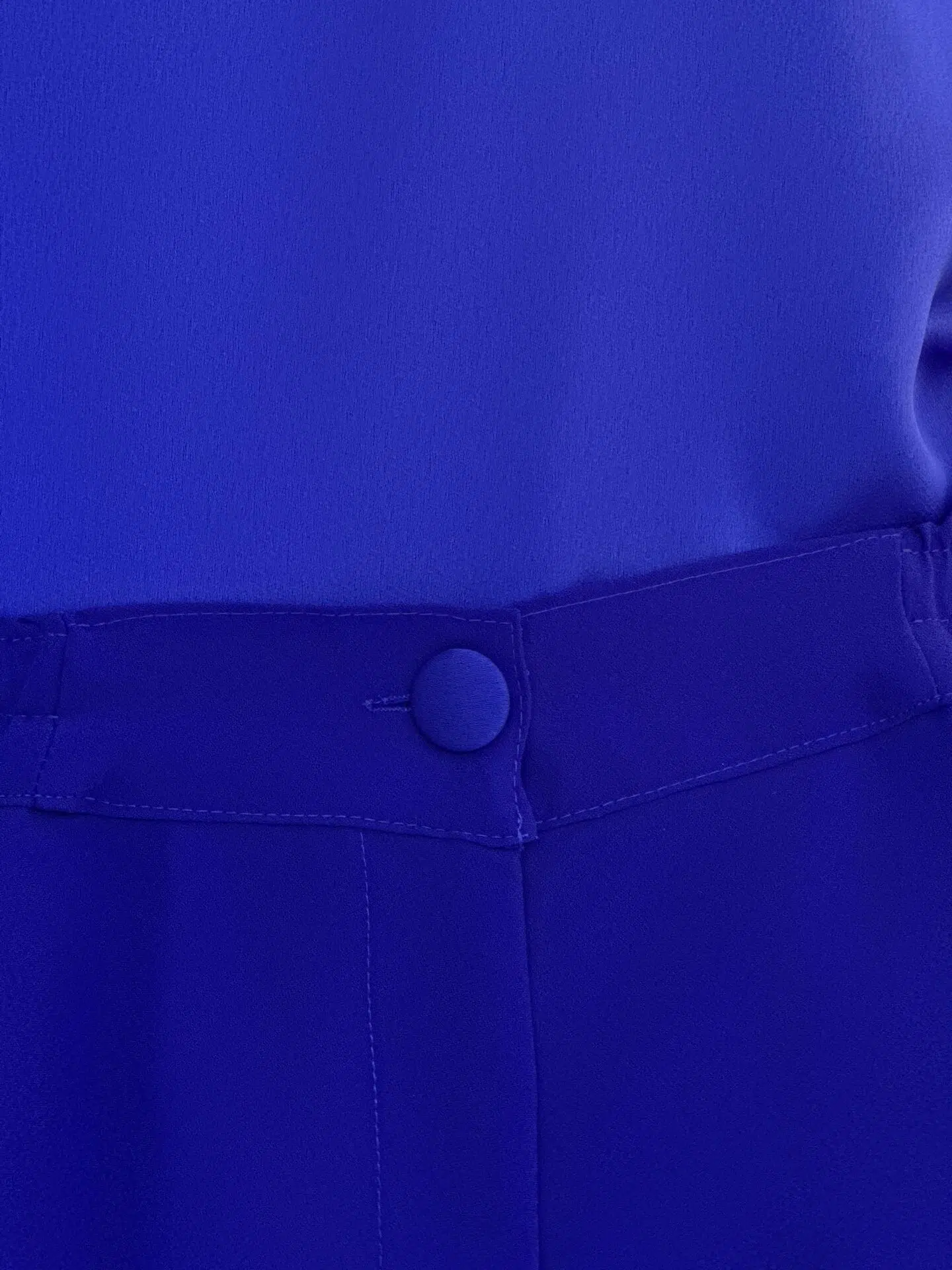 - Fabric covered button detail at zipper closure