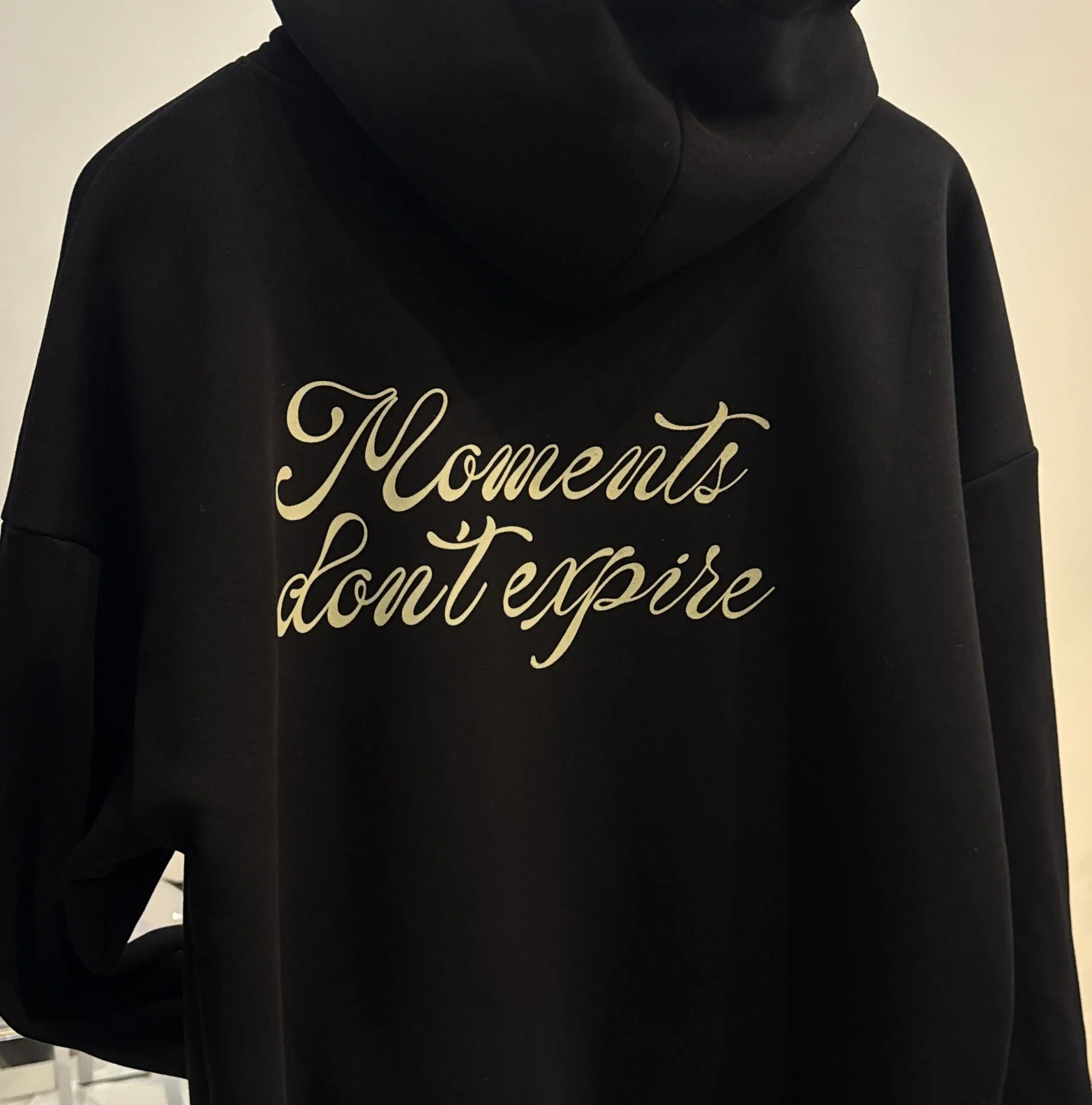 The Moments Don’t Expire Hoodie is a statement piece designed to be worn without limits. Created for everyday expression, it reflects the idea that moments live on beyond time.