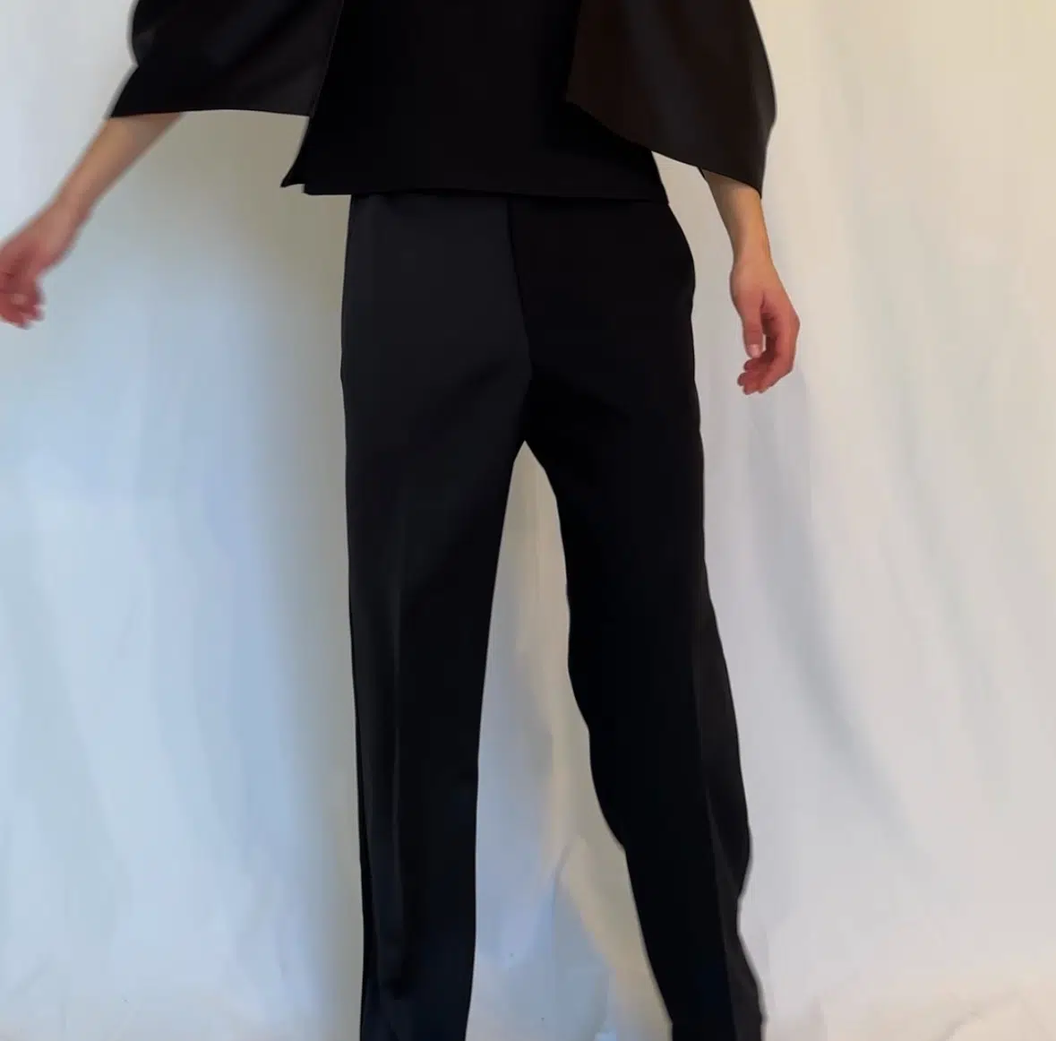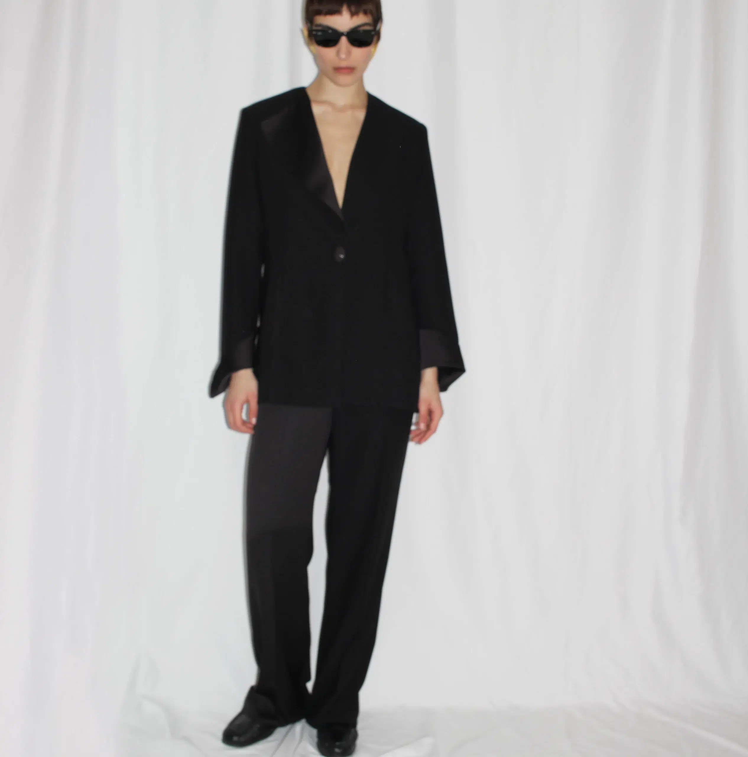 The Gentle Pants are designed as part of a modern suit concept that blends classic elegance with contemporary comfort. Featuring a unique contrast of textures, one leg is finished in satin, adding a subtle yet distinctive detail that defines the design.